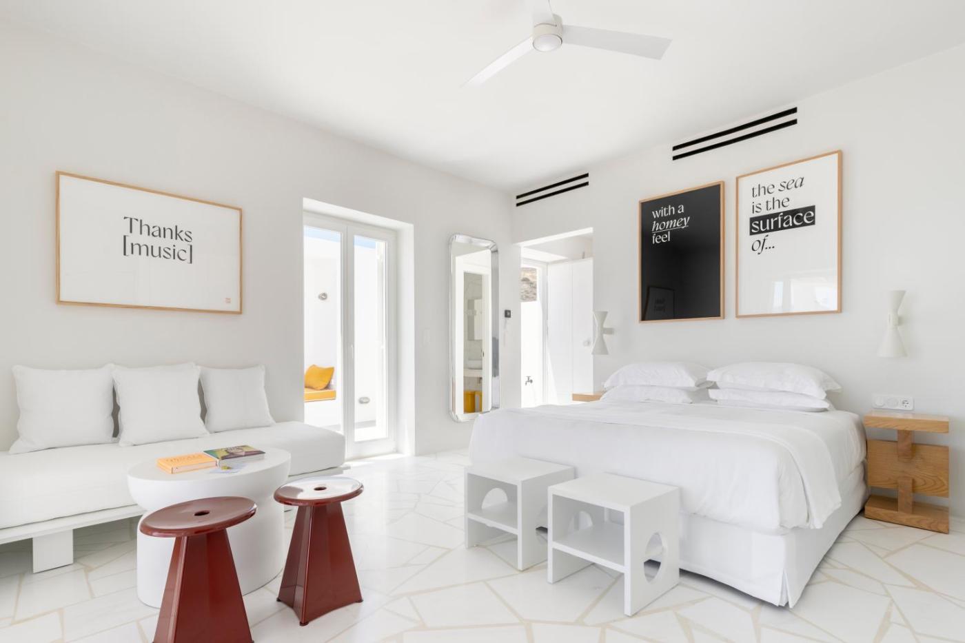 White Suite with Sea View. The pool with a view is a top feature of this suite. Boasting a private entrance, this air-conditioned suite includes 1 bedroom and 1 bathroom with a shower and a hairdryer. Featuring a terrace with sea views, this suite also offers soundproof walls and a flat-screen TV with streaming services. The unit has 2 beds. ;