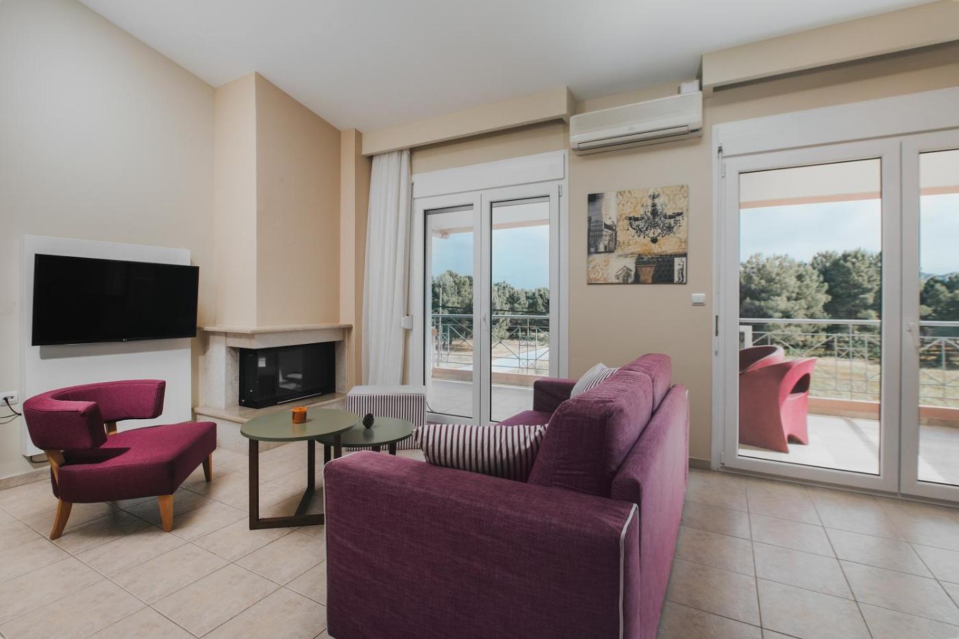 Apartment with Sea View. This apartment features a fireplace. In the kitchen, guests will find a stovetop, a refrigerator, kitchenware and an electric kettle. The spacious air-conditioned apartment features a flat-screen TV, a washing machine, a seating area, a dining area as well as sea views. The unit has 3 beds.