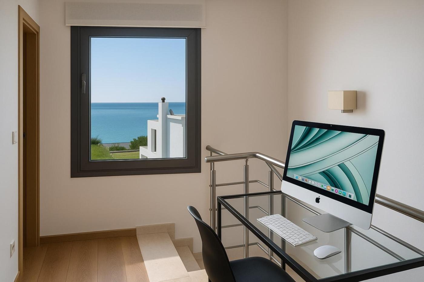 The villa with a balcony and sea views has 2 bedrooms, a living room, a flat-screen TV, an equipped kitchen with an oven and a microwave, and 2 bathrooms with a shower. The comfortable, air-conditioned accommodation also comes with soundproofing and a fireplace. The property has an outdoor dining area.