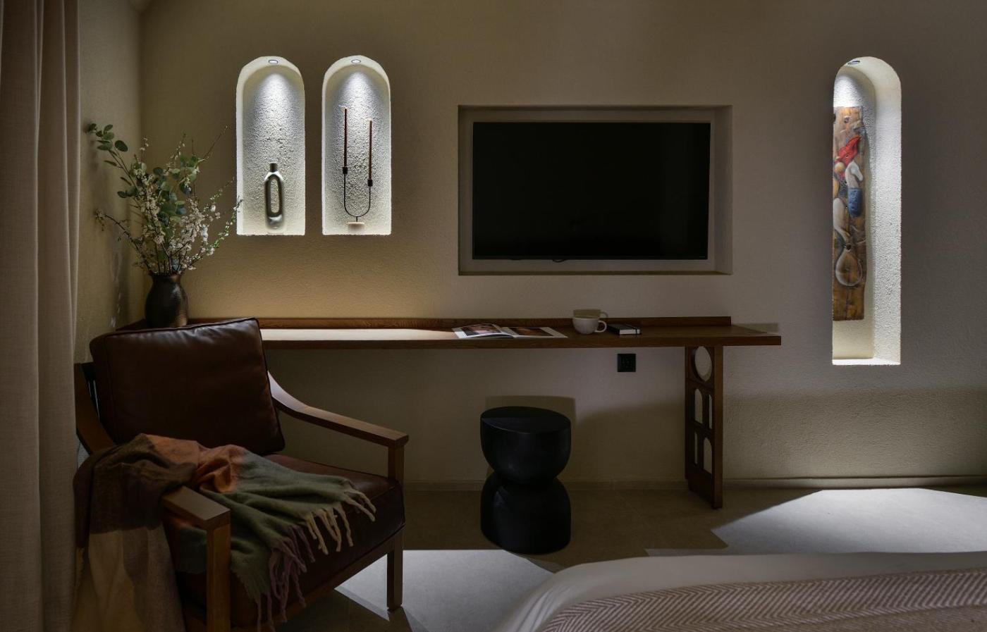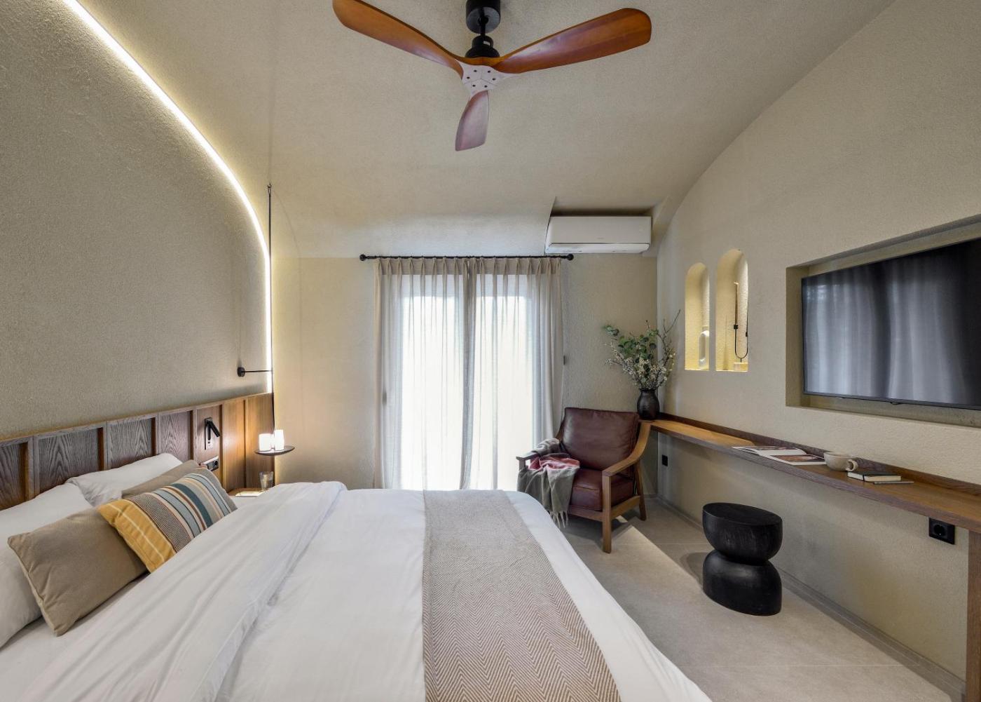 Deluxe Double Room. The spacious double room offers air conditioning, a tea and coffee maker, as well as a private bathroom featuring a shower and a hairdryer. Meals can be prepared in the well-fitted kitchenette, which comes with a stovetop, a refrigerator and kitchenware. This double room features a wardrobe, a tiled floor, a flat-screen TV and a terrace. The unit offers 1 bed.