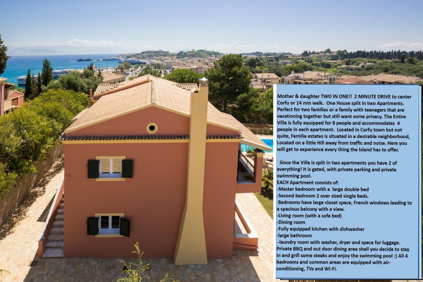 Boasting air-conditioned accommodation with a patio, The Four Seasons House City Villa with Pool is situated in Mantoúkion. This villa has a private pool, a garden, barbecue facilities, free WiFi and free private parking. The property is non-smoking and is located less than 1 km from Port of Corfu.