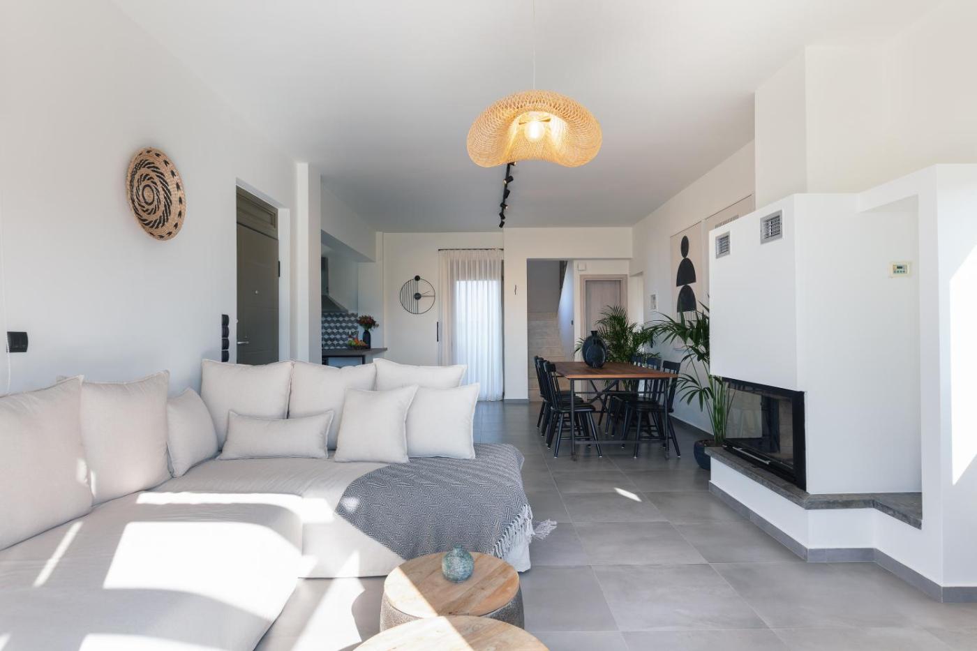 Villa with Sea View. This contemporary, air-conditioned, three-bedroom villa includes: -2 balconies with panoramic views of the Cretan Sea and Rethymno Town -a seating area with a fireplace and TV -a dining area -a kitchen with an oven, dishwasher and microwave -a washing machine -2 bathrooms, one with a bath and one with a shower -free WiFi and on-site parking.