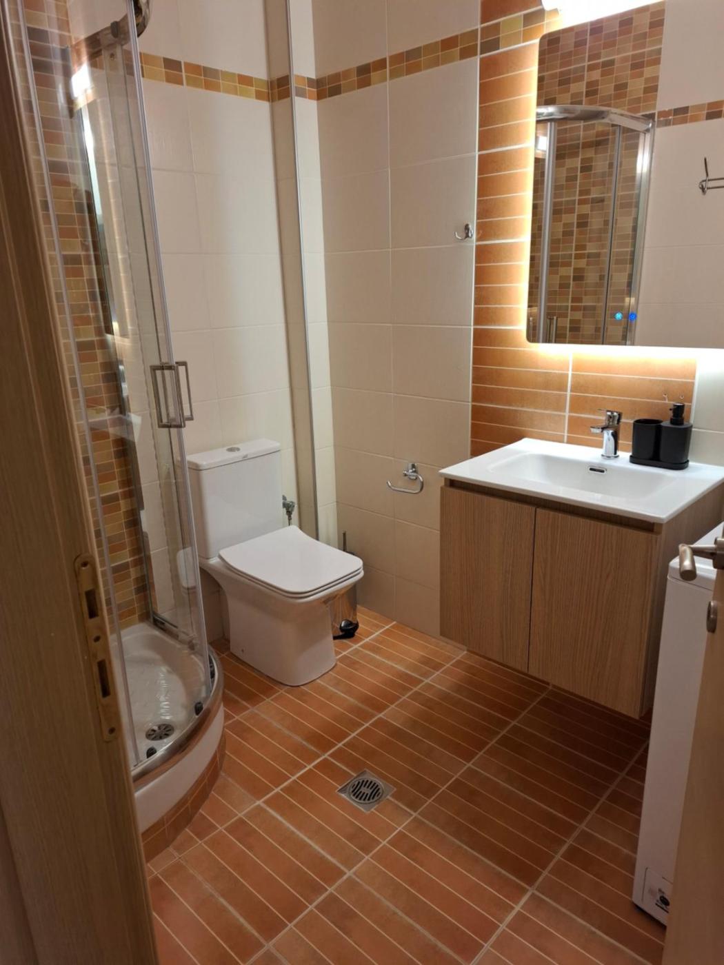One-Bedroom Apartment. Featuring a private entrance, this air-conditioned apartment consists of 1 living room, 1 separate bedroom and 1 bathroom with a walk-in shower and a hairdryer. Guests can make meals in the kitchen that is equipped with a stovetop, a refrigerator, kitchenware and an oven. Boasting a terrace, this apartment also provides a washing machine, soundproof walls and a flat-screen TV. The unit offers 2 beds. ;