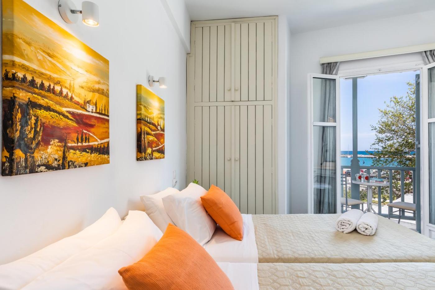 Double Room with Balcony. Opening to a furnished balcony with Aegean Sea views, this bright room comes with air conditioning, a TV and fridge. ;