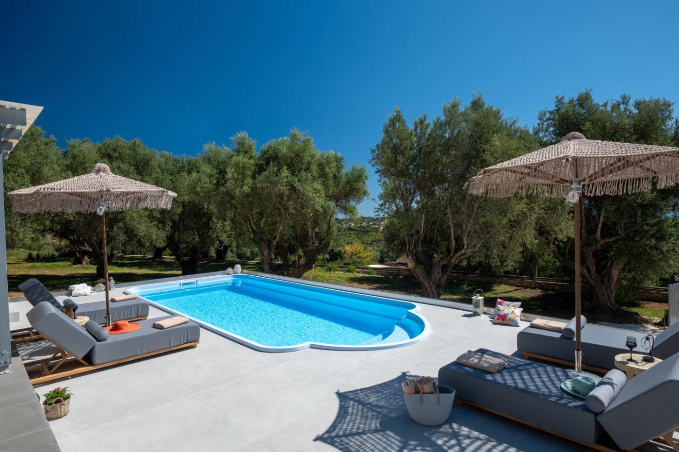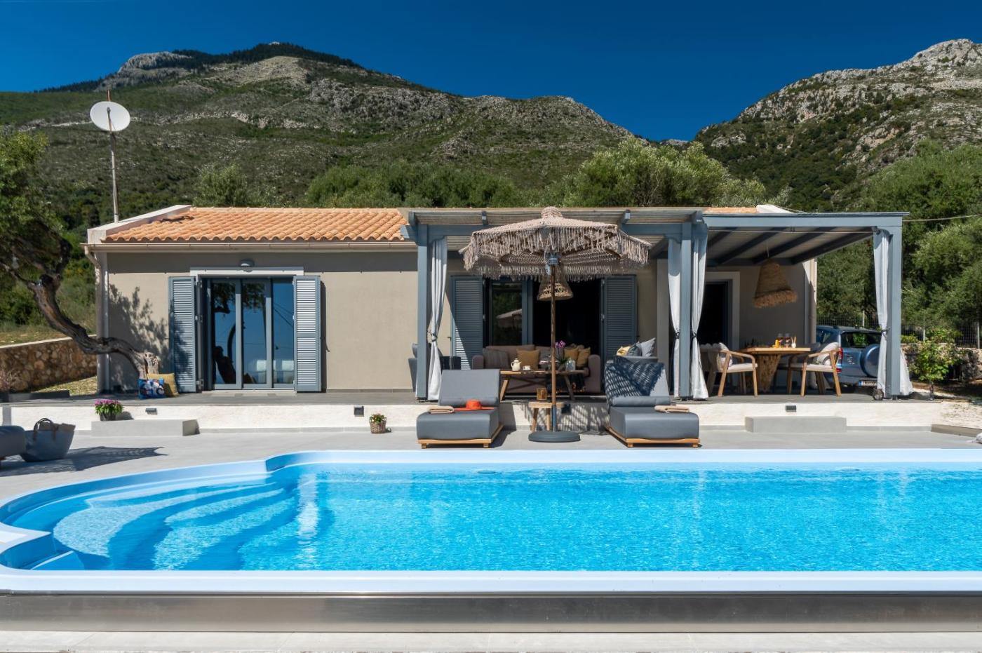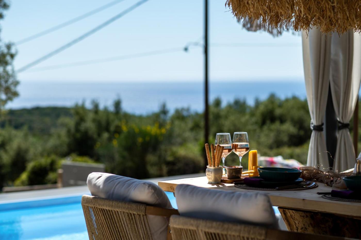 One-Bedroom House. This holiday home features a pool with a view. Featuring a private entrance, this air-conditioned holiday home is comprised of 1 living room, 1 separate bedroom and 1 bathroom with a walk-in shower and a hairdryer. The fully equipped kitchen features a stovetop, a refrigerator, a dishwasher and kitchenware. Boasting a terrace with sea views, this holiday home also offers a washing machine and a flat-screen TV with streaming services. The unit offers 2 beds.